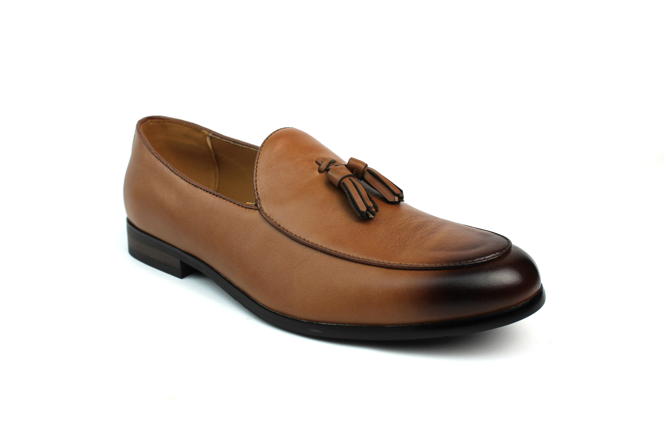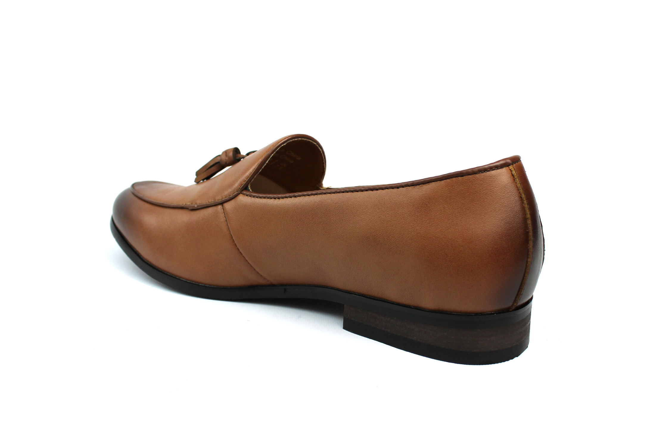 Genuine Leather Cognac Brown Slip On Loafers With Tassels Shoes