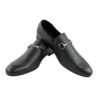 Genuine Leather Mens Black Slip On Loafers Gold Buckle Dress Shoes