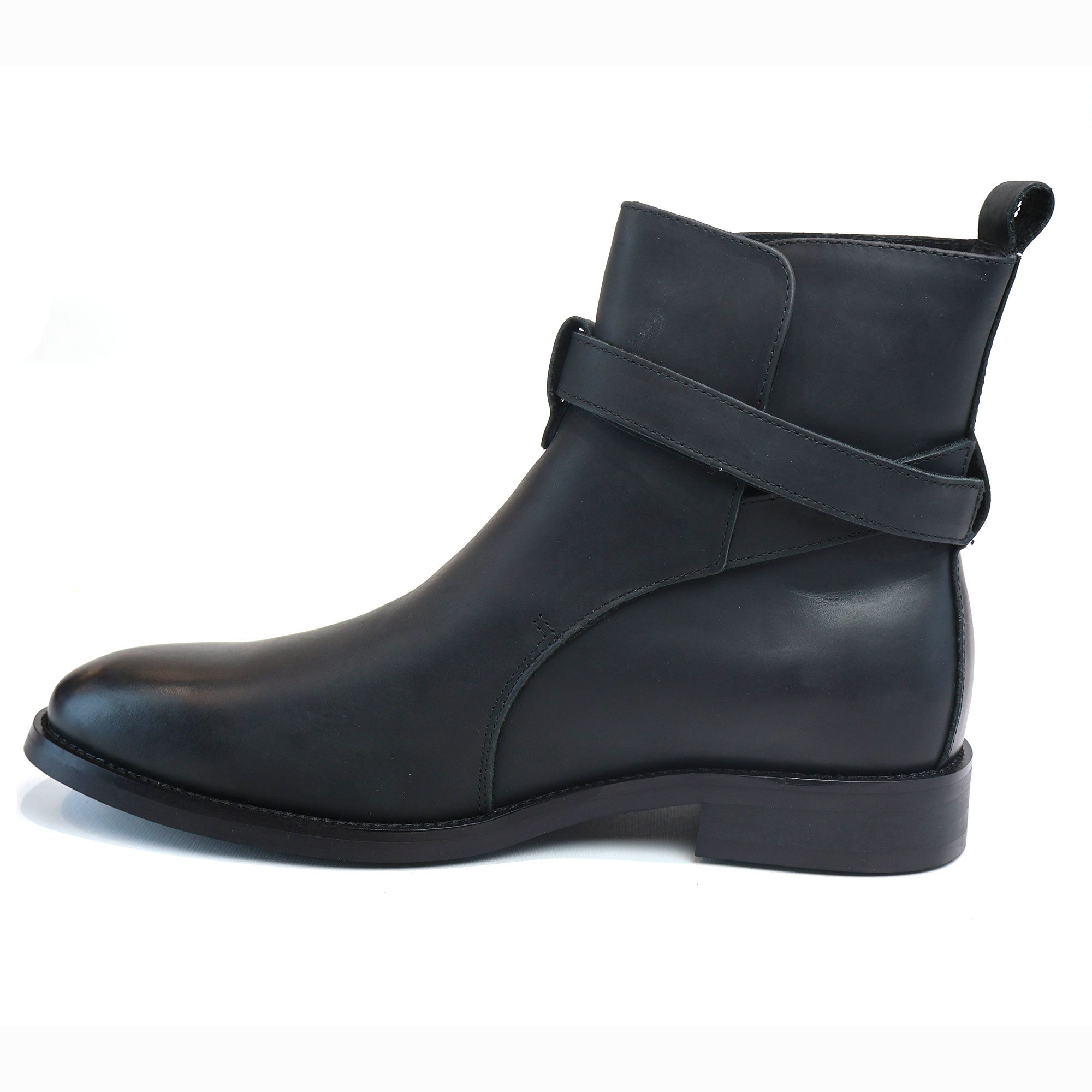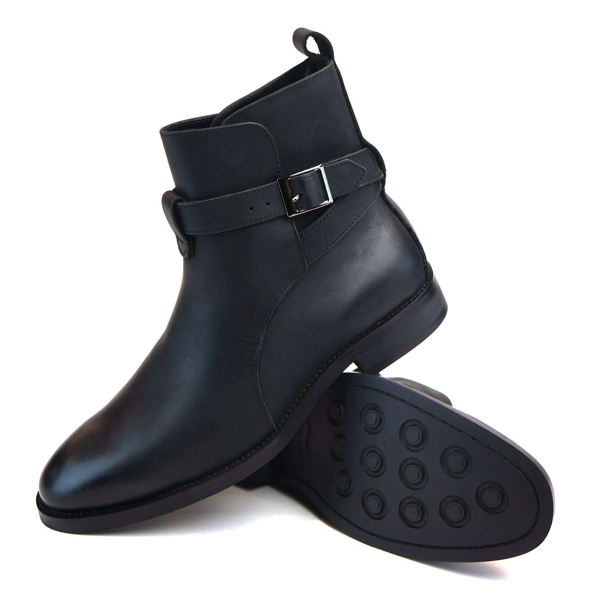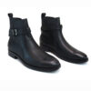 Men’s Black Genuine Leather Round Toe Boots Buckle & Straps Ankle Fashion