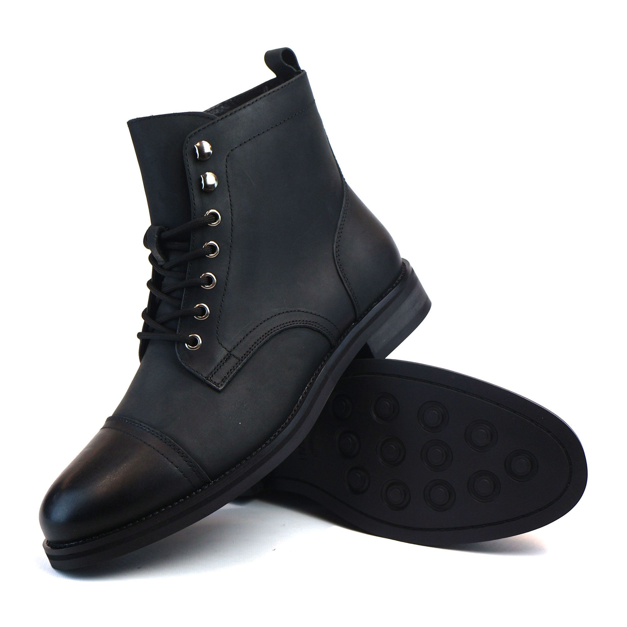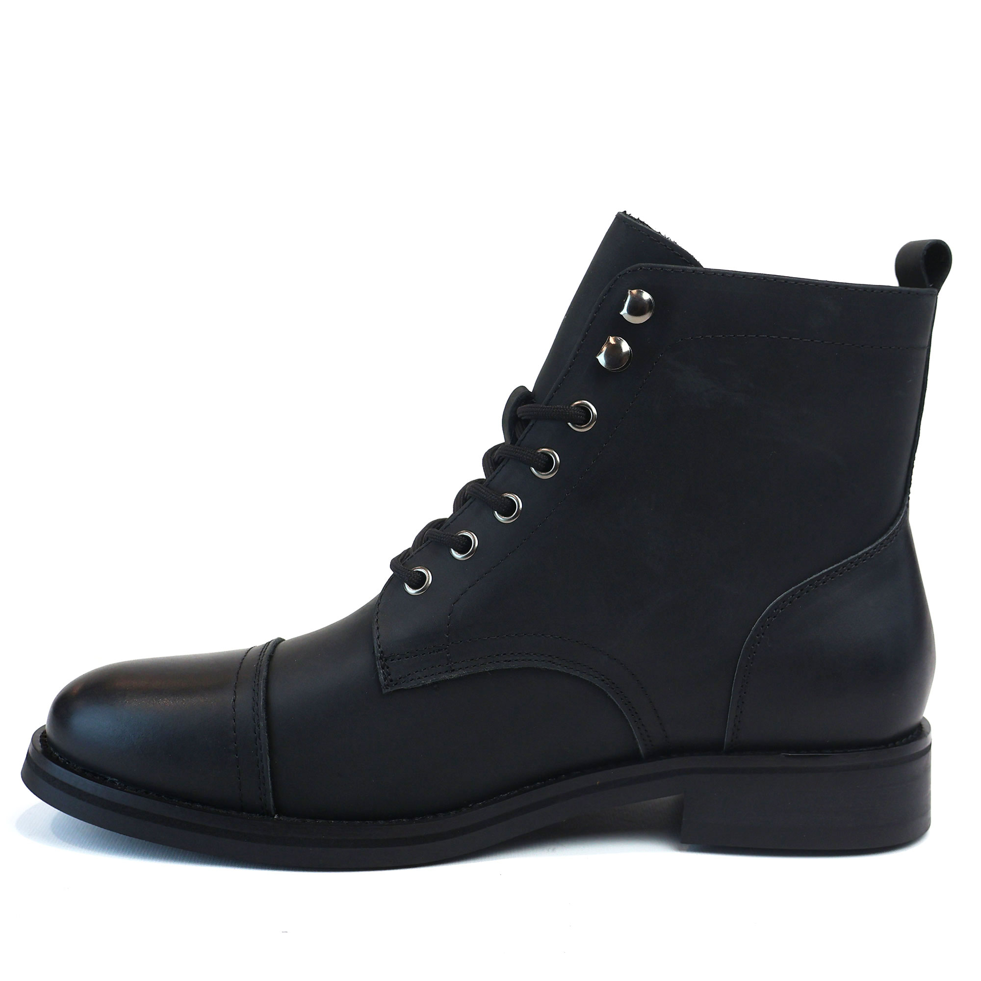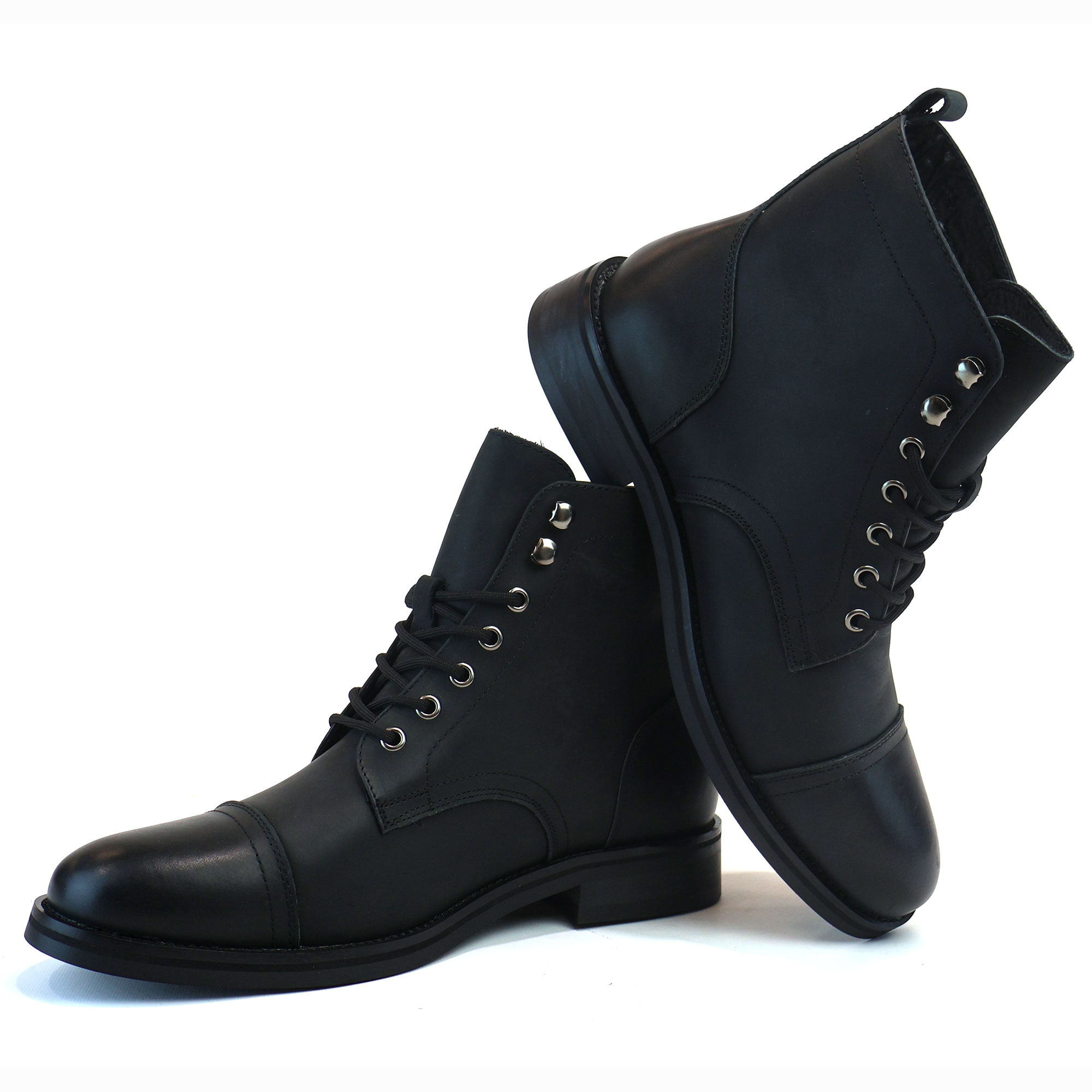 Men’s Black Cap Toe Genuine Leather Boots Ankle Lace-up Fashion
