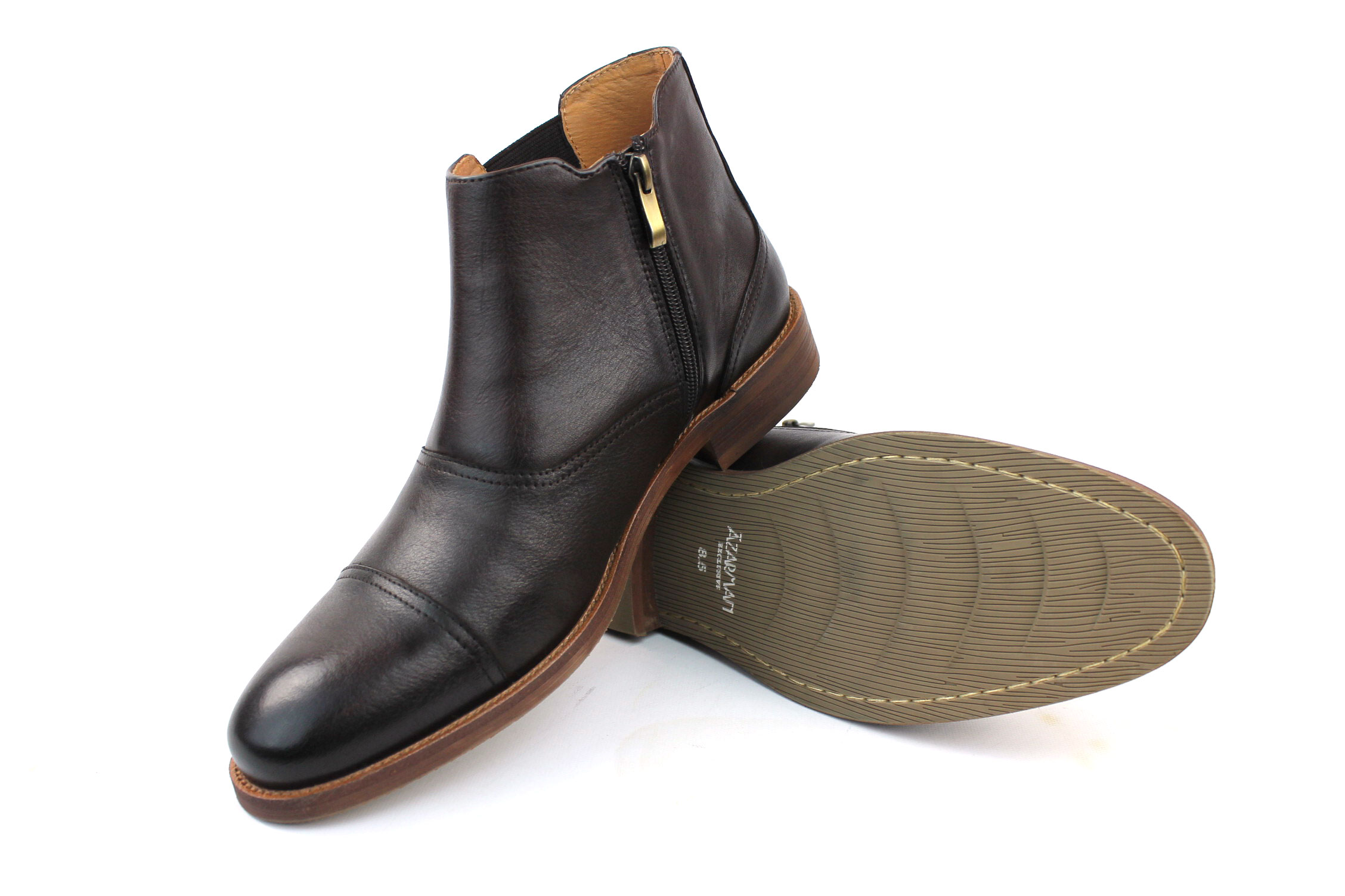 AZARMAN EXCLUSIVE genuine Leather Men’s Business-Casual Dress Cap Toe Boots to wear with suits or jeans at any occasion. Step confidently into every day with these easy on side zipper, easy off henry boots you can always count on for effortless style. When you’re in need of a chic pair for the office or weddings, these luxe boots have got you covered. Designed with style and versatility in mind, these derby boots effortlessly blend comfort and fashion to take you seamlessly from morning to evening. With its versatile silhouette and chic design details, this boot transitions seamlessly from the office to casual outings, making it a staple in your footwear collection.