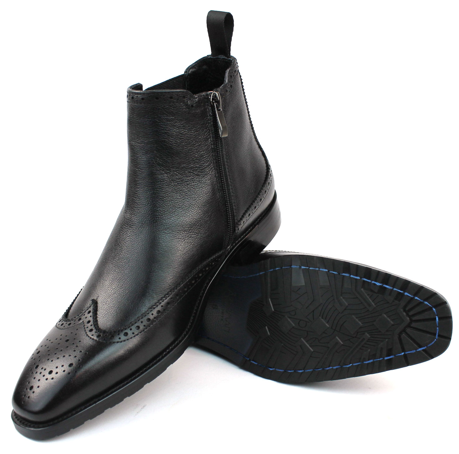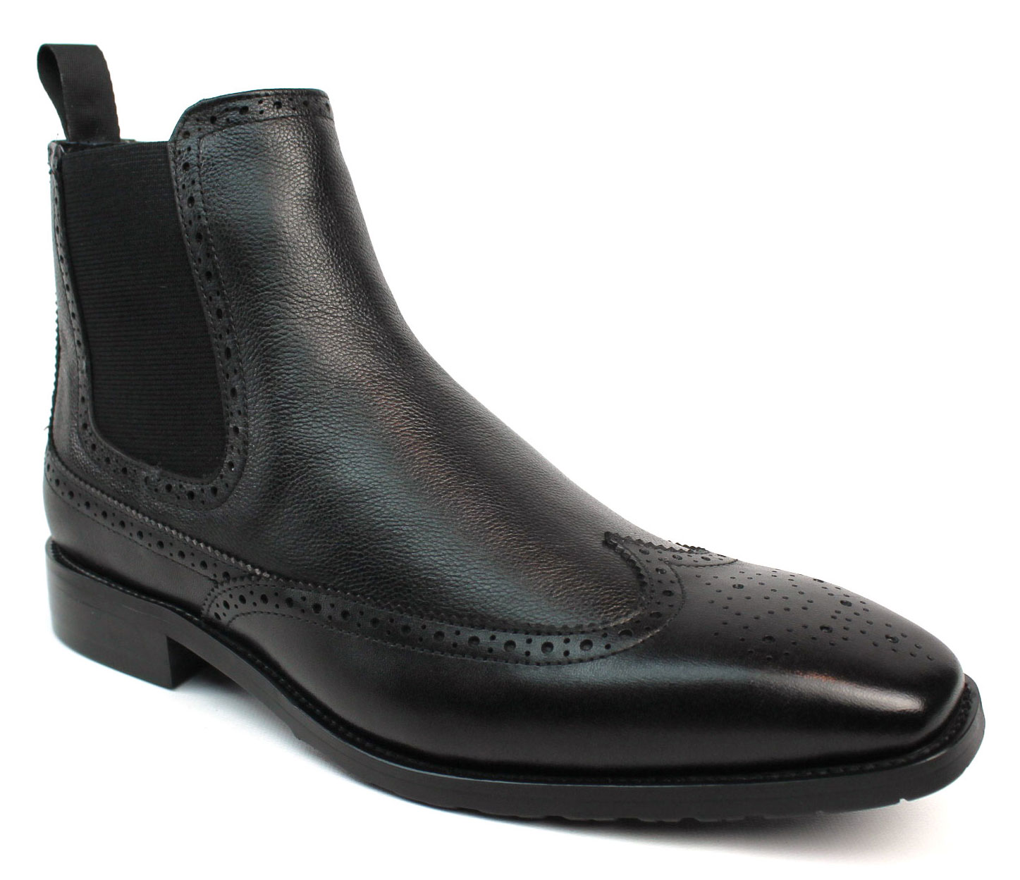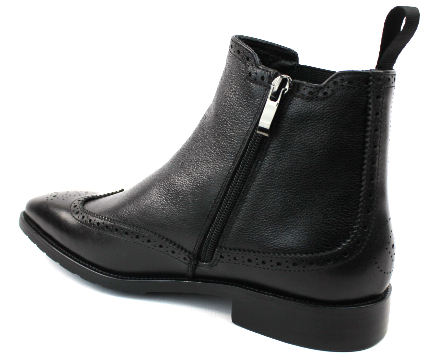 Men’s Exclusive Wing Tip Black Genuine Leather Chelsea Boots With Zipper