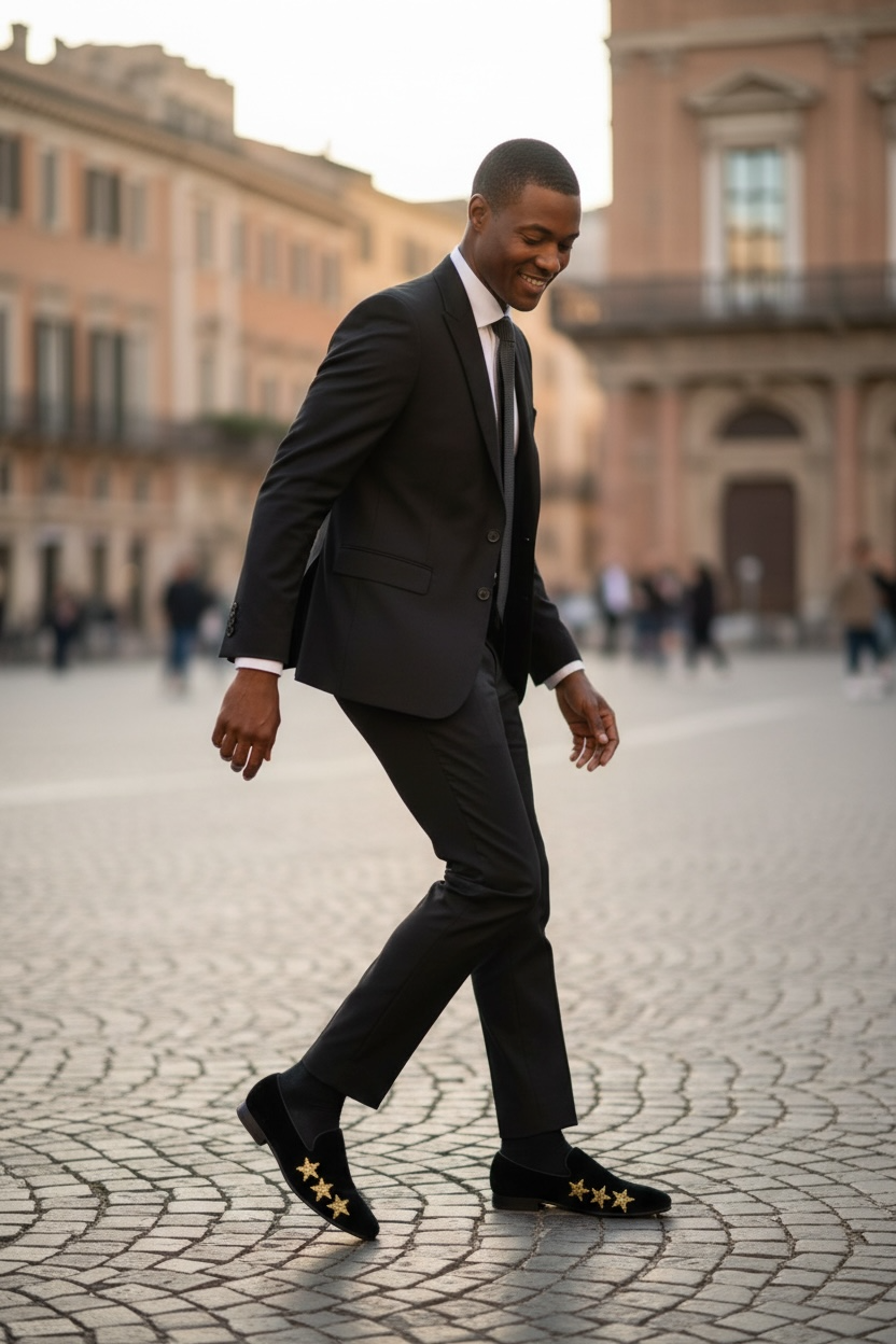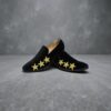 Men’s Slip On Black Velvet Dress Loafers With Gold Rhinestone Stars
