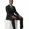 Slim Fit Mens Crystal Embellished Peak Lapel Black Suit 9936