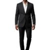 Slim Fit Tuxedo Pants With Diamond & Black Studs Flat Front No Pleats Black Side Satin Line