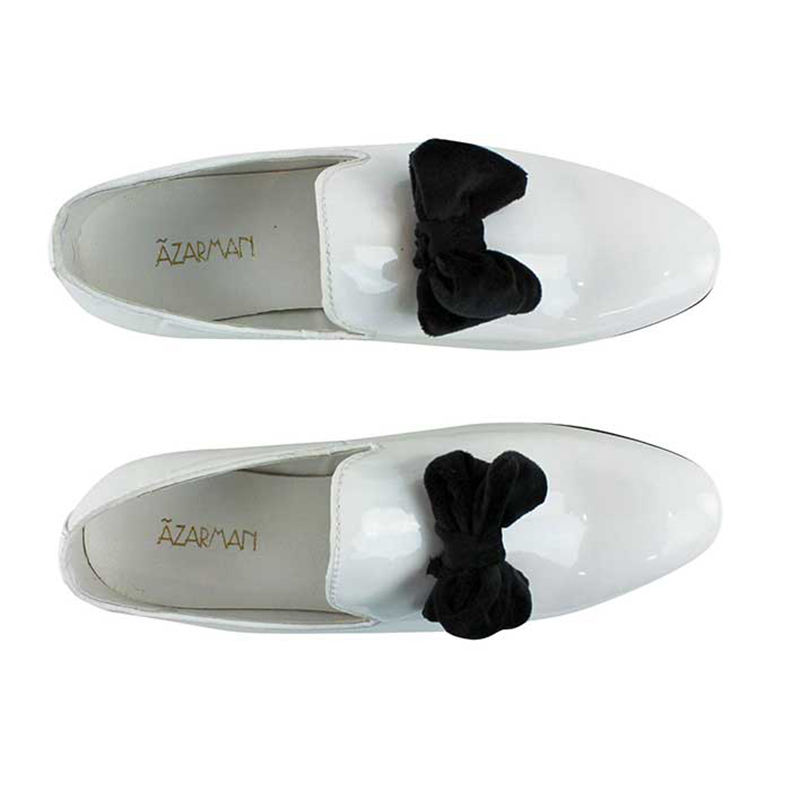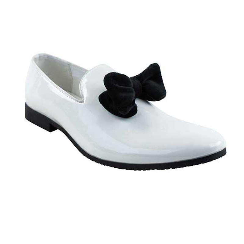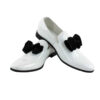 Slip On White Patent With Black Velvet Bow On Top Dress Shoes