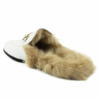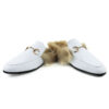 White Leather Backless Slip On Fur Gold Buckle Loafer